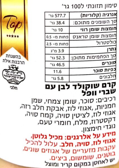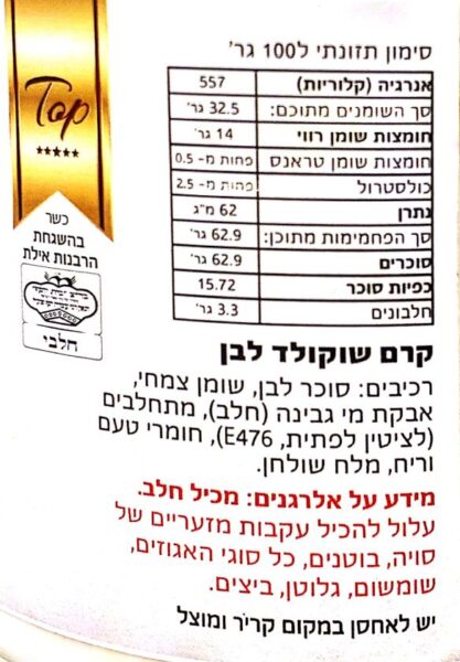 קרם וופל לבן 500 גרם חלבי (בטעם לואקר לבן)