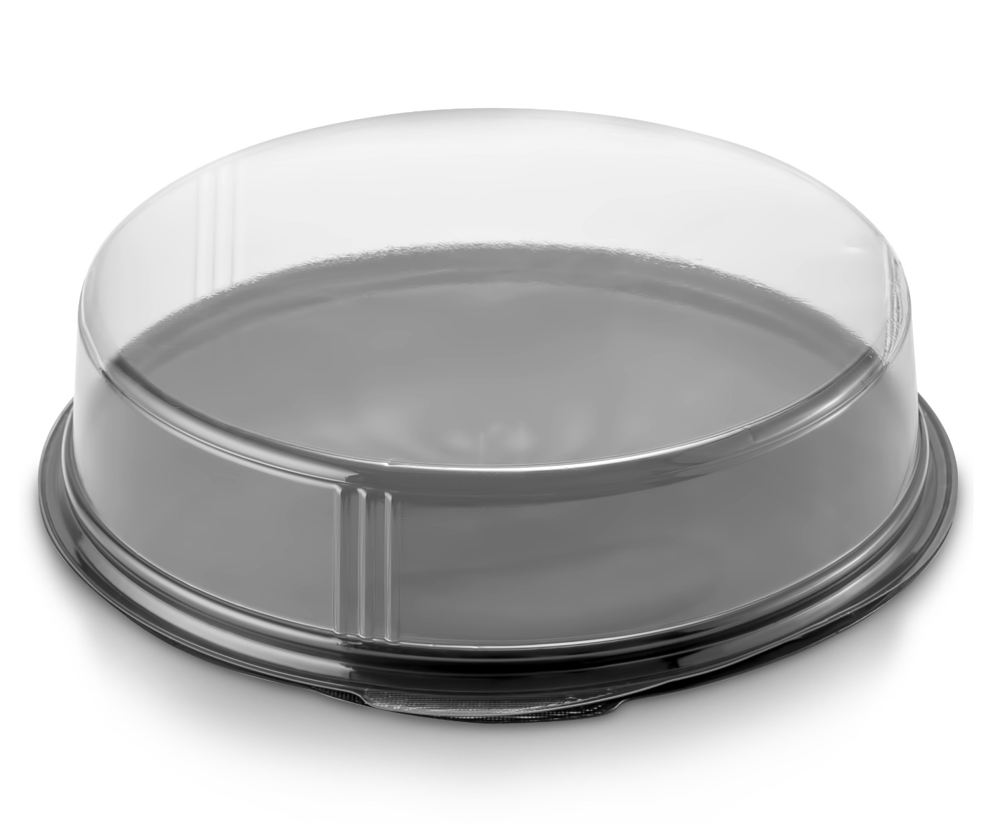 אריזת עוגה העשויה פלסטיק קשיח,מגש שחור ומכסה שקוף.
