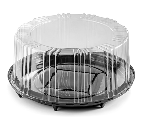 אריזת עוגה  העשויה פלסטיק קשיח,מגש שחור ומכסה שקוף.