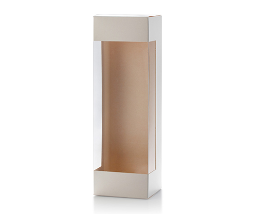 אריזת קרטון חד פעמית מהודרת, לעוגה מאורכת, המכסה שקוף וניתן לראות דרכו את העוגה.