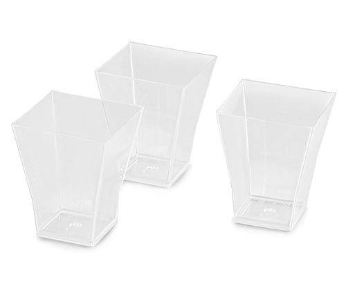 כוסות פלסטיק במגוון צורות לקינוח אישי. קינוח אישי מותאם בגודל לנשיאה ביד, מאפשר לאכול את קינוח טעים מבלי להתלכלך.