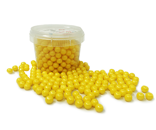 סוכריות בצורת חרוזים עגולים ומבריקים לקישוט עוגה.