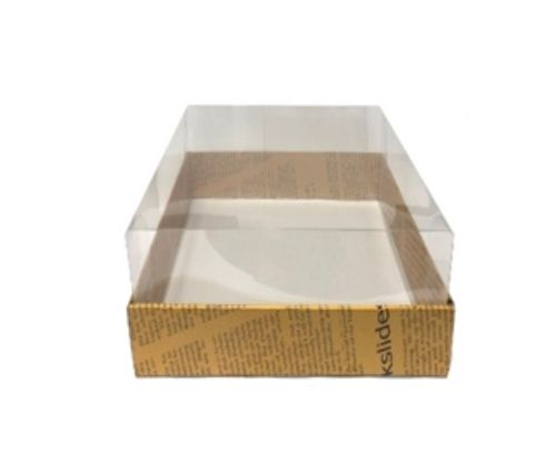 קופסת קרטון דמוי עיתון עם מכסה שקוף 45/30/11.5