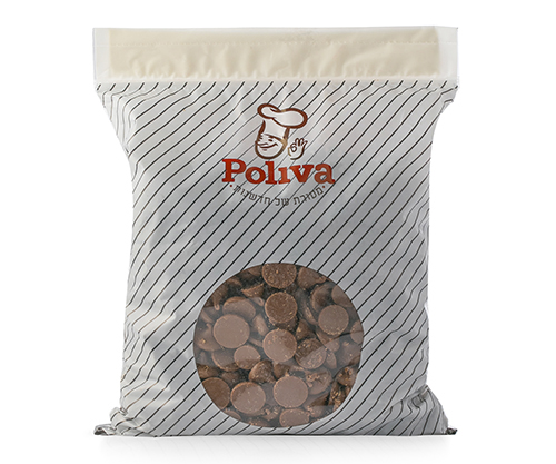 שוקולד חלב בצורת מטבעות, מכיל 30% מוצקי קקאו, מתוצרת פוליבה.