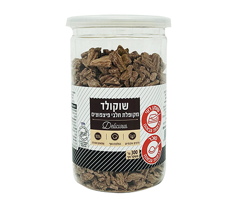 חטיף השוקולד המוכר, שוקולד מקופלת, שבור לפיצפוצים. שברי השוקולד חלב מתאימים לקישוט עוגות ומתאימים לפיזור על קינוחים וגלידות.