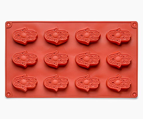 תבנית סיליקון ליצירת 12 חמסות מעוטרות במקביל. חמסה, סמל בצורת כף יד בעלת חמש אצבעות היא סמל כהגנה מפני עין הרע בתרבות בארצות ערב, בצפון אפריקה ובמזרח התיכון.