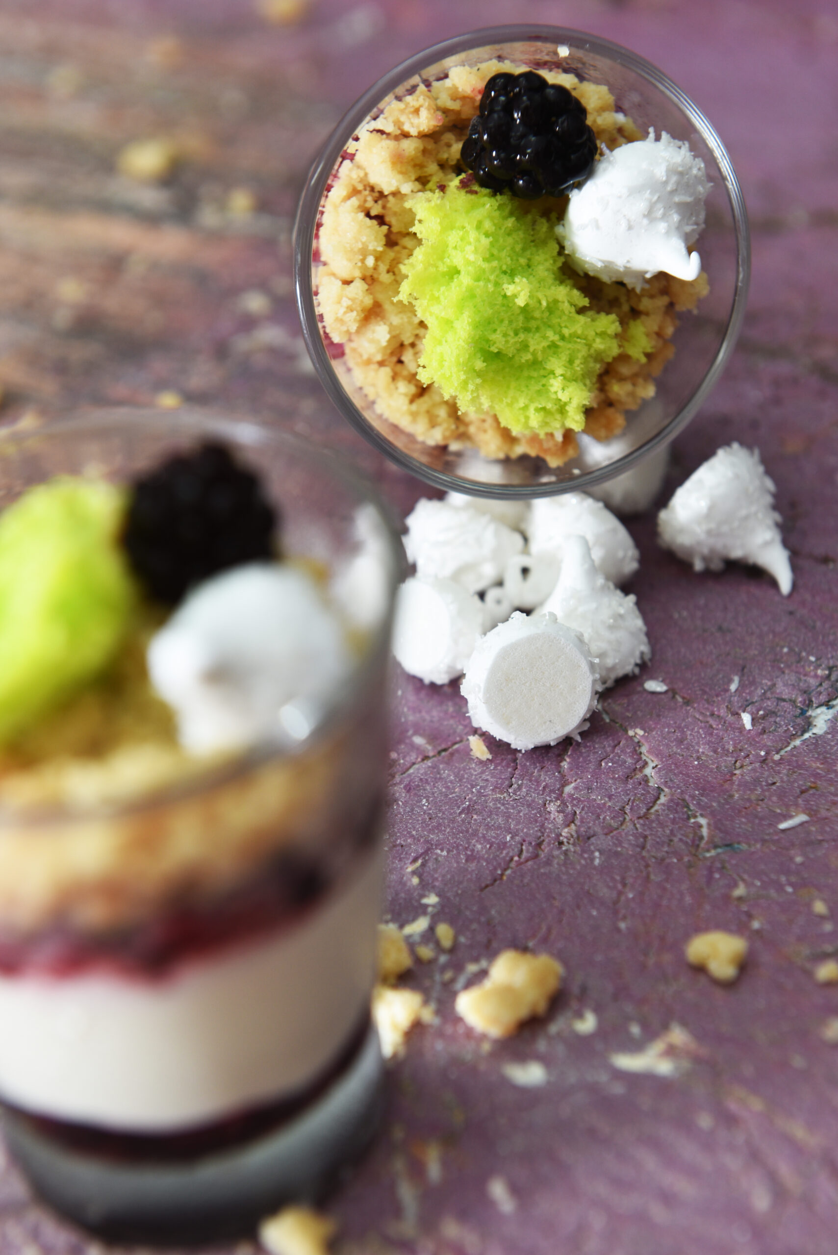 קומפוט פירות יער, מוס לימון וקרמבל.